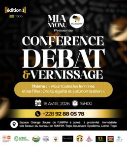 Le premier temps fort est annoncé pour le samedi 18 avril 2026 à 16 heures à l’Espace Jeunes Orange de l’UNFPA, situé à Tokoin Forever, à Lomé. Une conférence-débat y sera organisée autour du thème : « Pour TOUTES les femmes et les filles : droits, égalité et autonomisation ».