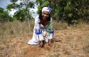 Dr Cécile Ndjebet mettant en terre son plant à Agouègan